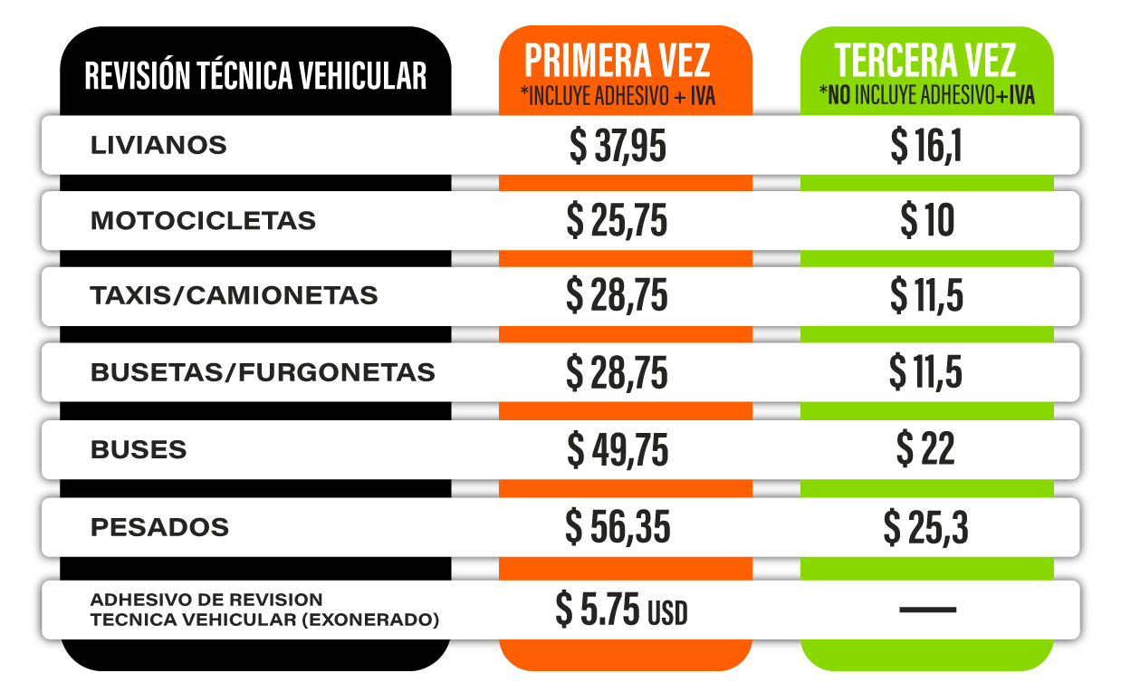 *Todos las tarifas están reguladas por la AGENCIA NACIONAL DE TRÁNSITO (ANT), NO pague a intermediarios